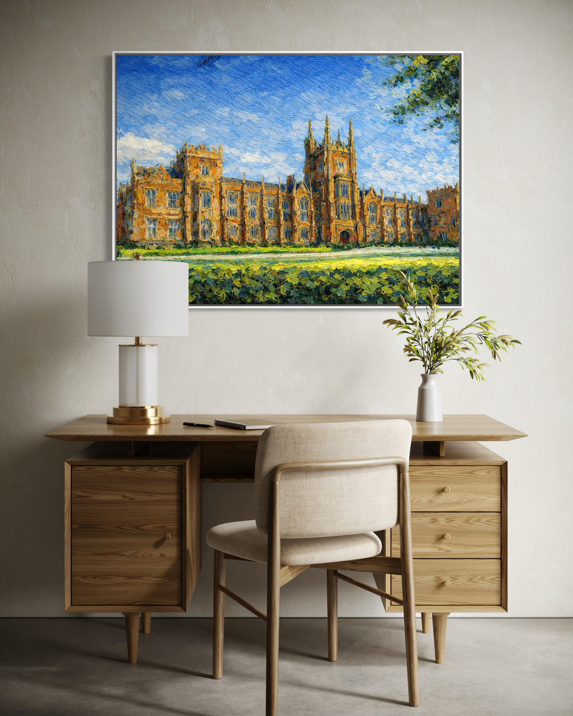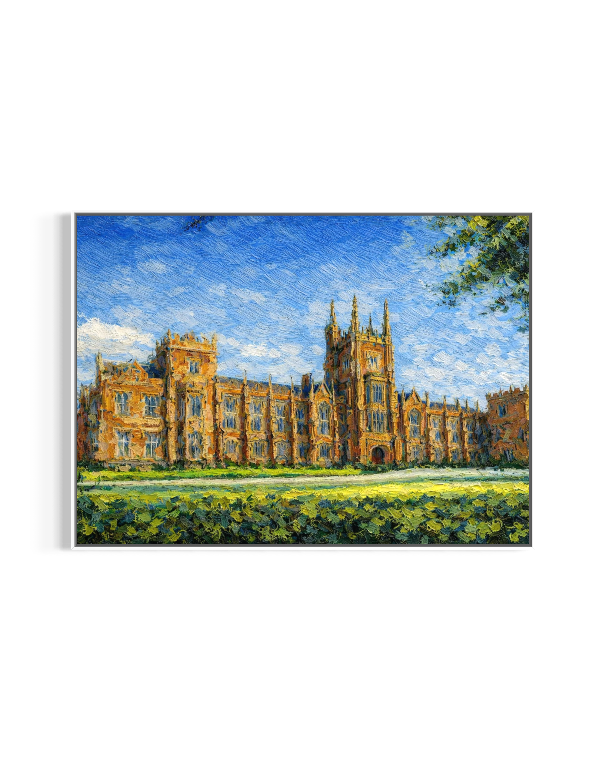 A canvas print of my original artwork, featuring the iconic Lanyon Building at Queen’s University Belfast. This print pairs beautifully with other Belfast city scenes in the collection, making it an ideal addition to a gallery wall or a thoughtful standalone piece.