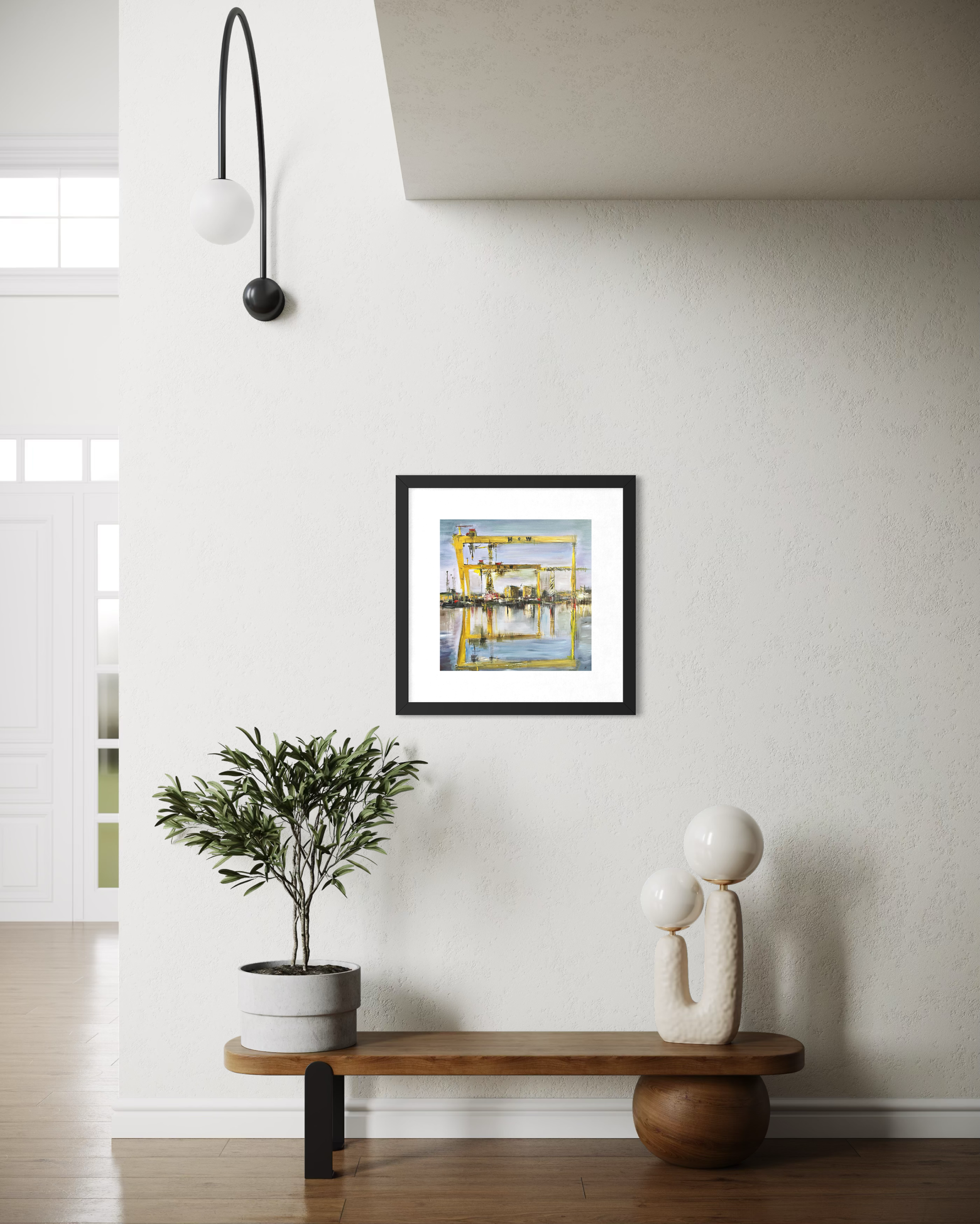 Professionally framed and ready to hang, this print is well suited to homes, offices, or contemporary interiors, and makes an ideal gift for those with a connection to Belfast, lovers of industrial heritage, or anyone drawn to bold and atmospheric artwork. The print is available in two sizes and a choice of frame finishes to complement a variety of interior styles.