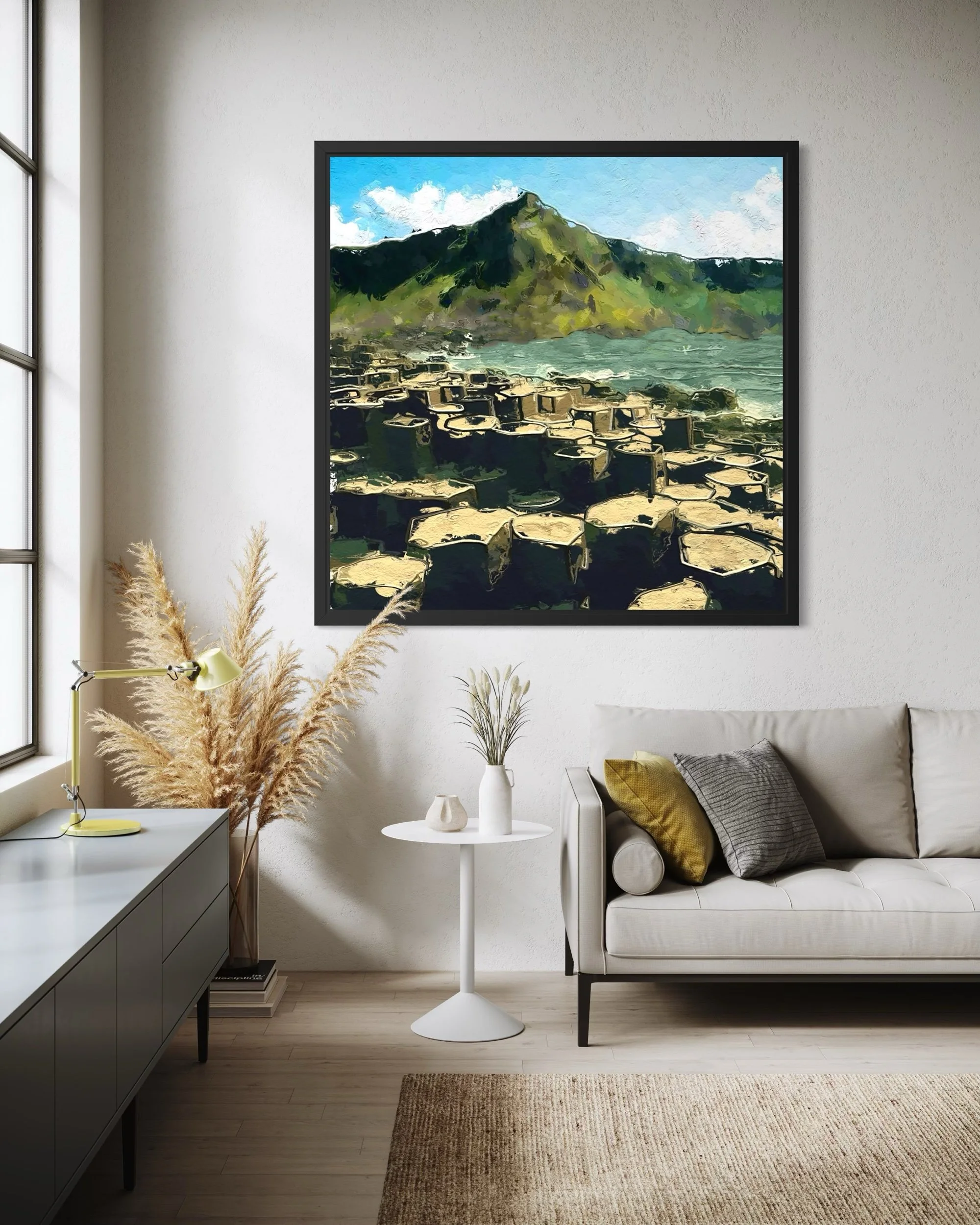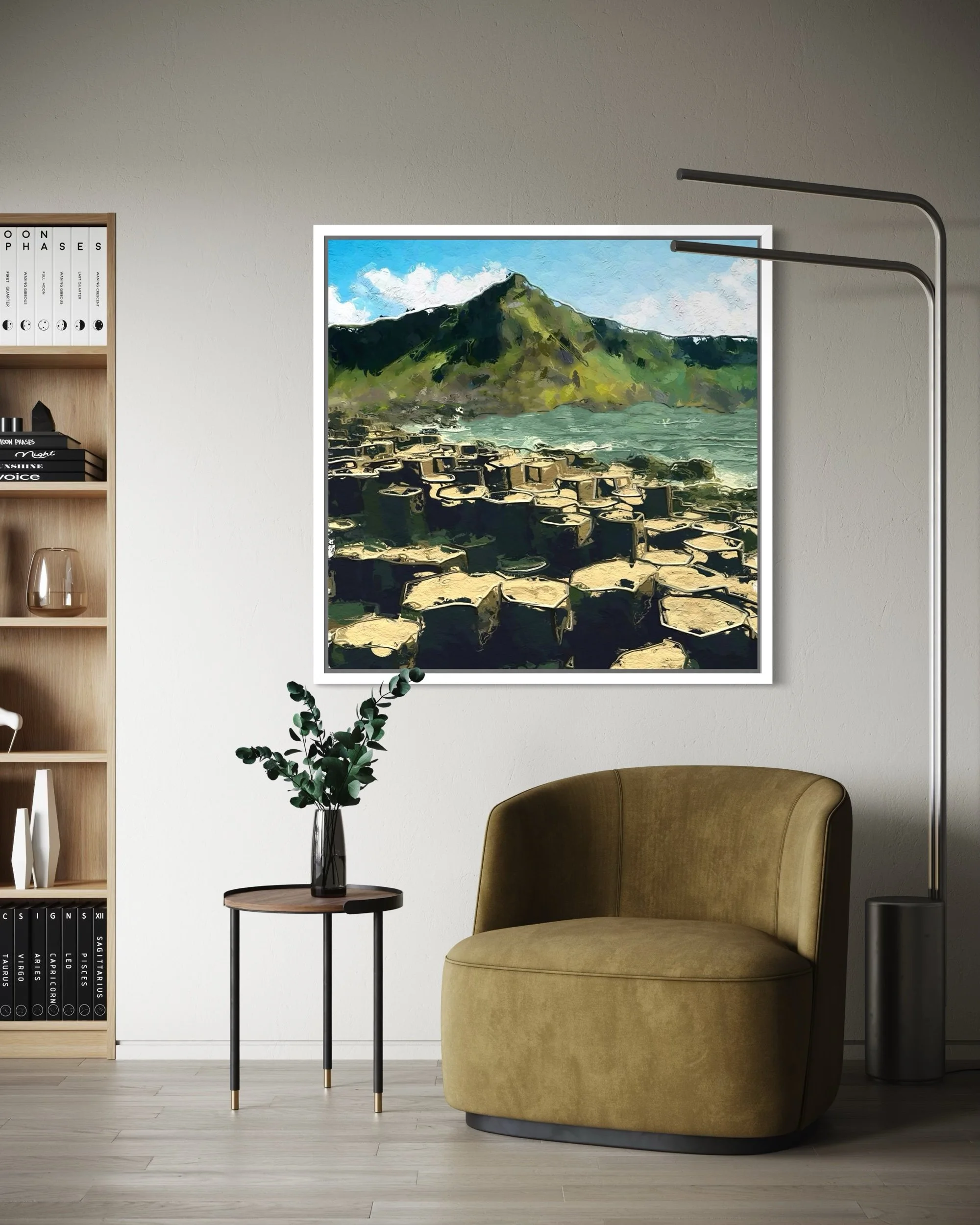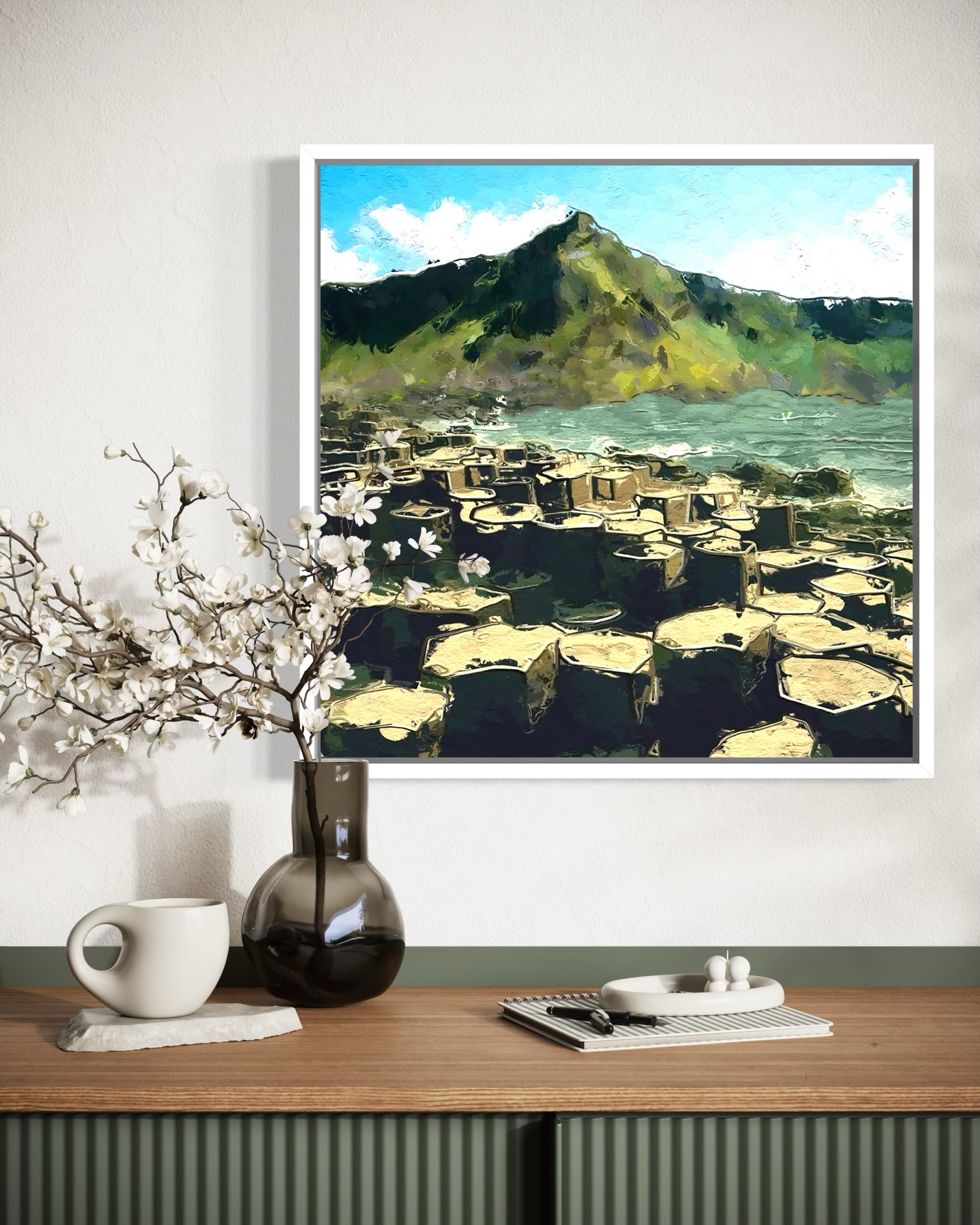 Bring the colour and tranquillity of the Antrim coastline into your home, or pair it with other pieces from the collection to create a cohesive landscape series. Also available as a standard canvas print or Fine Art Paper Print.