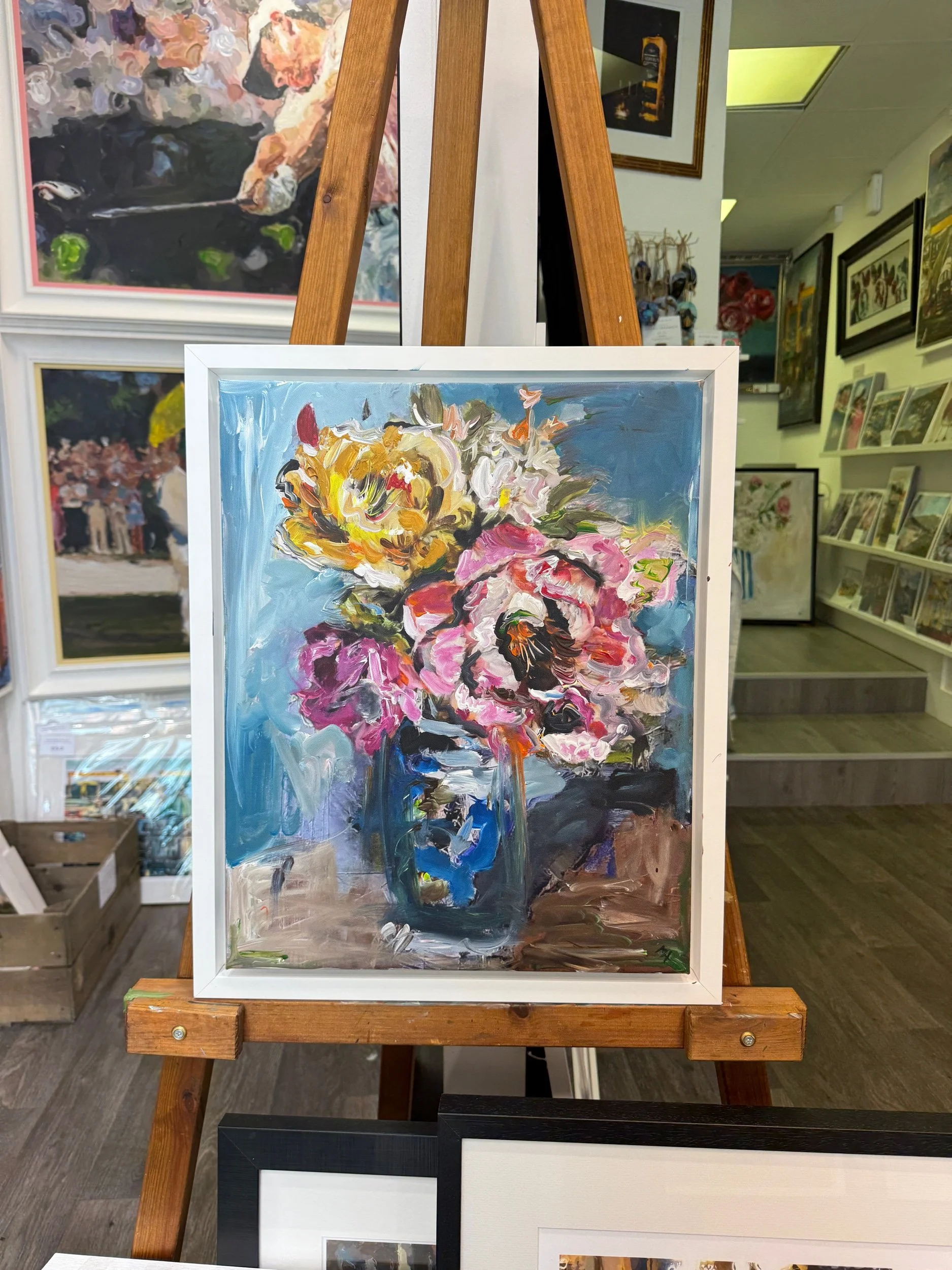 If the original piece has sold, high-quality canvas prints and hand-embellished canvas prints are available online or by request.
