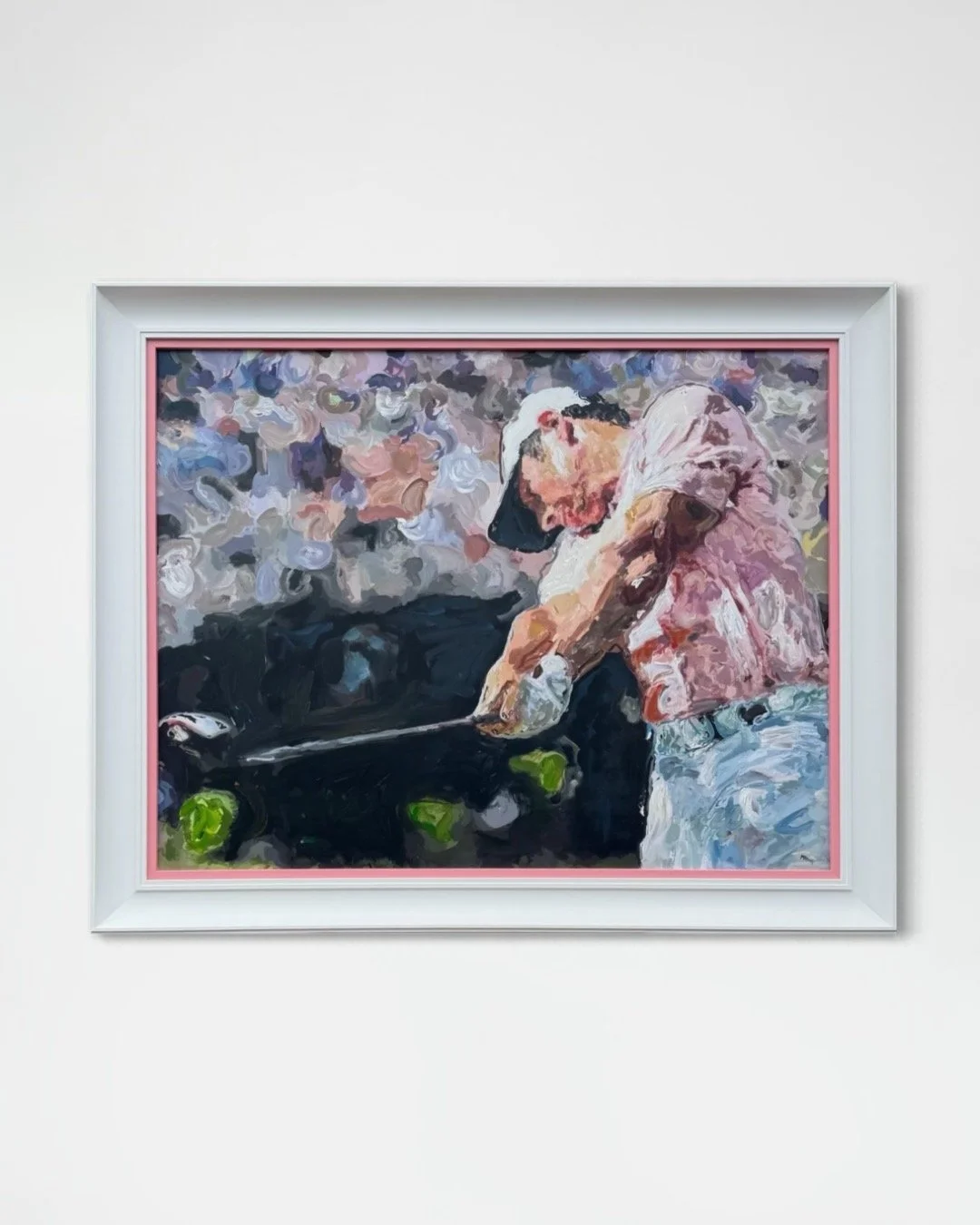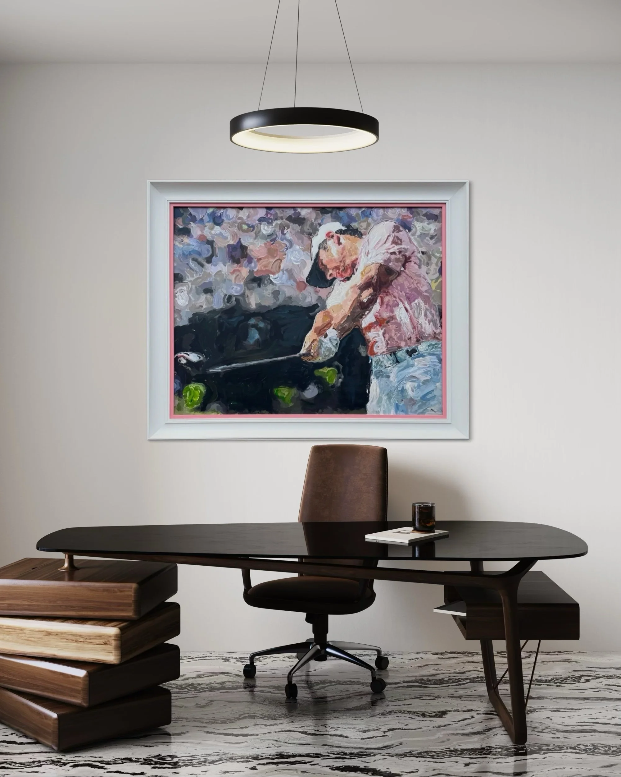 Experience the iconic McIlroy swing with this intricate original acrylic painting. This dimensional piece masterfully depicts the iconic swing crafted by golf coach supremo Michael Bannon back at Holywood golf Club in Northern Ireland.